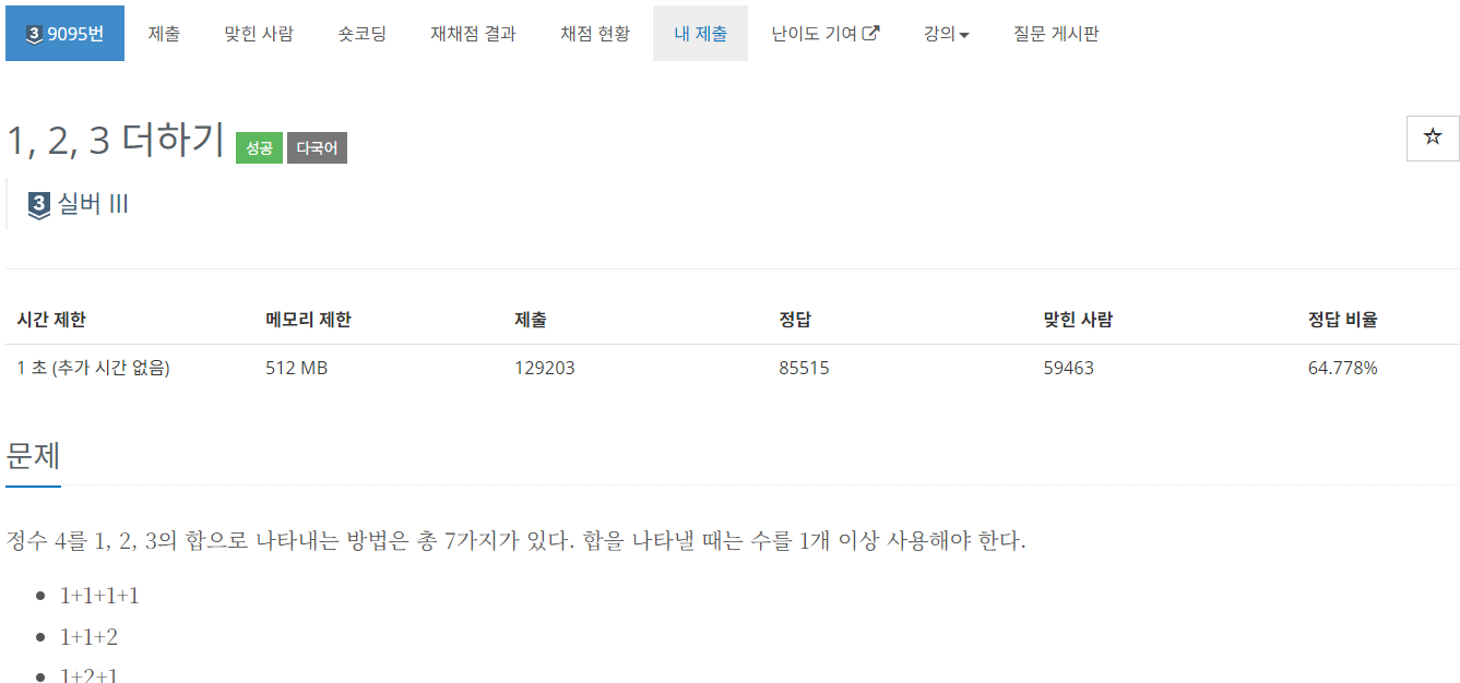 백준 9095번 "1, 2, 3 더하기" --- 파이썬